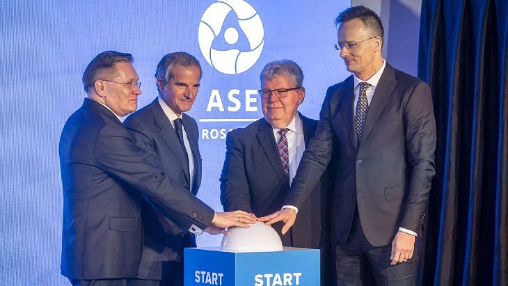 Also present: IAEA General Secretary Grossi, the picture of him and Rosatom CEO Likhachev pressing the start button can be found at the Hungarian minister Szijjártó’s facebook account; the IAEA (International Atomic Energy Agency) refrained from publishing a press release, but the Hungarian politicians proudly presented the event on their facebook accounts.